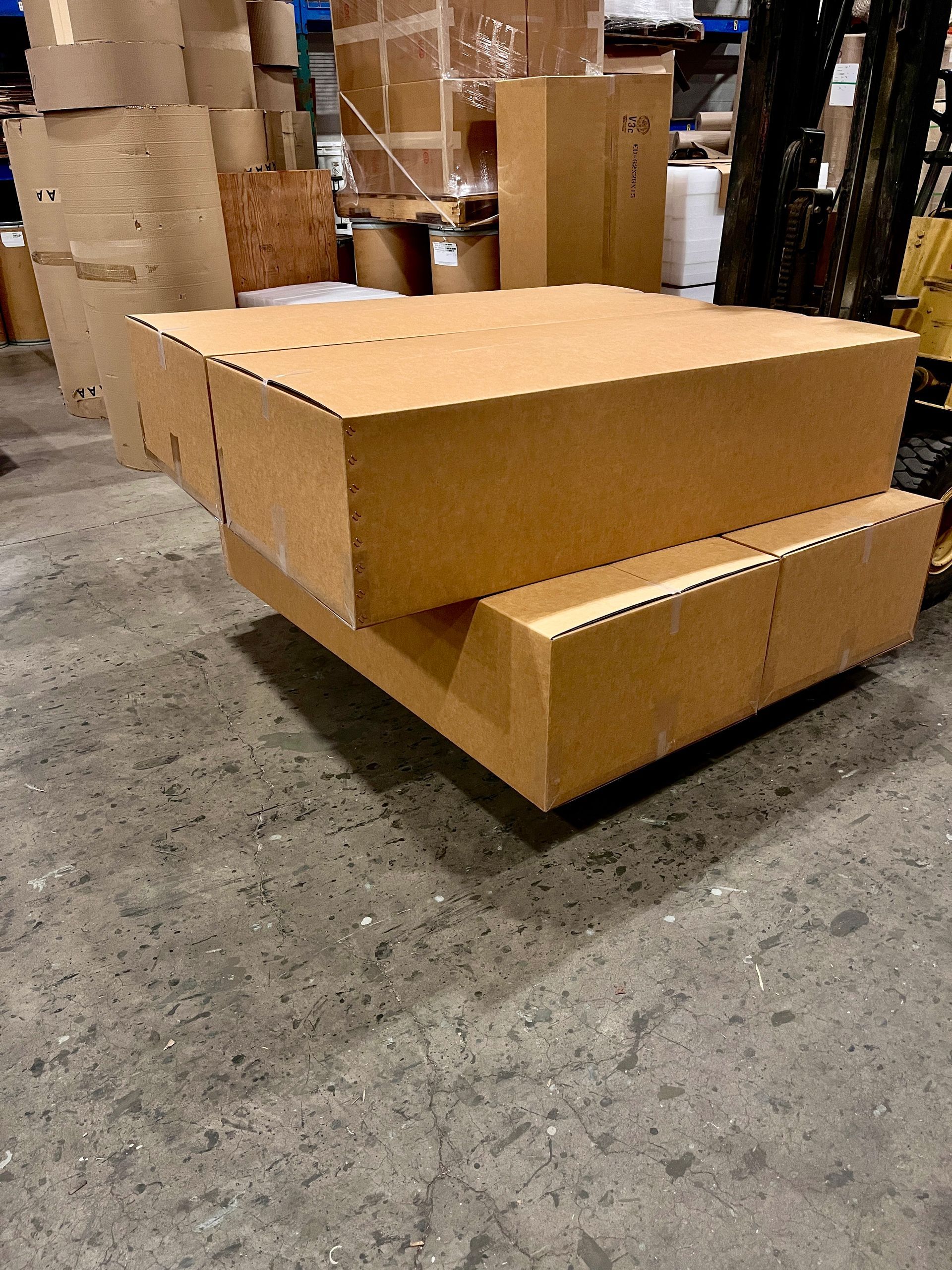 - Stock and custom corrugated boxes (single-, double-, and triple-wall)